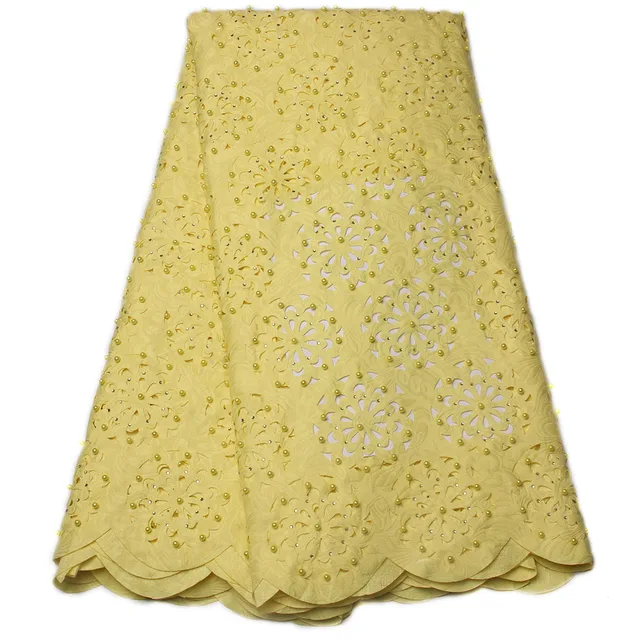 African Dry Lace Fabric Swiss Voile High Quality Yellow Laser Cutting Laces Fabric Embroidered ...