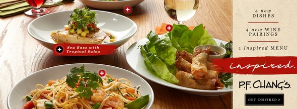 PF Chang's Coupons, Promo Codes & Best Deals For the facebook lovers, there is a piece of exciting news all the way through. One can get a flat 40% off on some of the select deals. Just about liking a PF Chang's page on Facebook page would open up new vistas. Some of the most premier deals include getting a $ 10 paid off on a $ 40 purchase. This would be indeed a whole new comprehensive ...