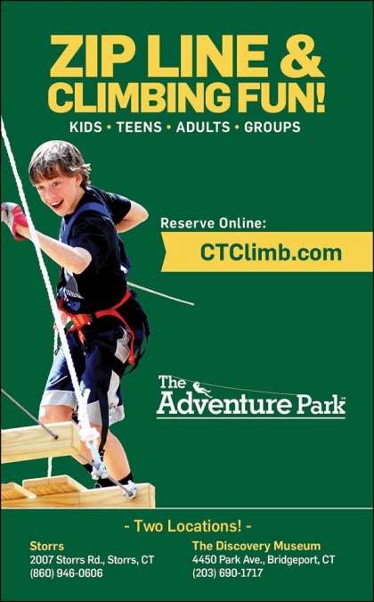 Discovery Adventure Park - Bridgeport, CT In 2012, the Adventure Park at Discovery Museum opened. Within five beautiful acres of woodland behind the Museum building you will find our amazing "aerial forest park.". Experience "adventure in the trees" that's perfect just for you or with friends, family and parties, ages 7 to adult. (203) 690-1717. 4450 Park Ave. Bridgeport.