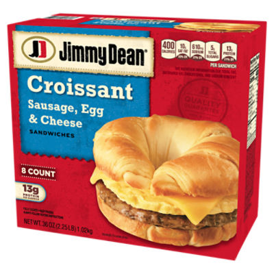 Jimmy Dean Sausage Egg And Cheese Croissants: A Quick And Easy ... Jimmy Dean Sausage Egg Cheese Croissant Instructions Preheat oven to 350F. Separate croissant dough into 8 triangles. Place sausage on short side of each triangle and roll up. Place rolls, seam side down, on greased baking sheet. Beat egg and water; brush over rolls. Sprinkle with cheese. Bake at 350F for 20-25 minutes. Jimmy Dean Croissant Sandwich 12 Count Box - CostcoChaser Costco offers $3 off on this item, dropping the price to $7.45 price is valid from Sep. 05, 2018 through Sep. 30, 2018. Costco Coupon Book: Sep. 05, 2018 - Sep. 30, 2018 This is a new pack size with same 12-count Jimmy Dean croissant sandwich, each croissant sandwich has weight of 4.5 oz and is individually wrapped for convenience. Jimmy Dean 4.8 oz. Sausage, Egg, and Cheese Breakfast Croissant - 12/Case $29.47 /Case Regularly: $37.99 /Case Rapid Reorder Layered with hearty Jimmy Dean sausage, a premium fried egg, and melty cheddar cheese Pre-cooked and ready to heat and serve Comes on a buttery croissant roll The satisfying way to start any day Ships frozen UPC Code:400013218582 Shipping: Quick Shipping Usually ships in 1 business day